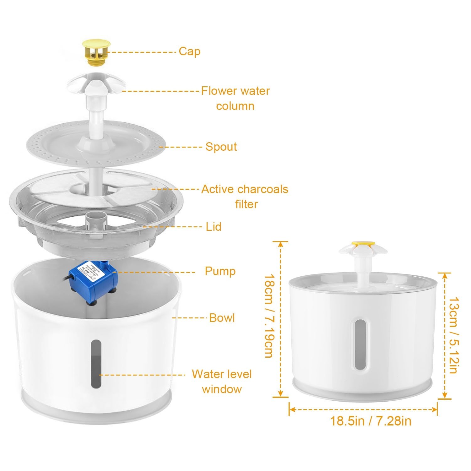 **ATTRACTIVE AND RELIABLE MADE*:Adopting daisy flower-shaped design; our water column-styled fountain is unique and cute to attract your pet’s attention easily. And made from high-grade PP resin materials; it is non-toxic; odorless; break-proof and easy to clean.