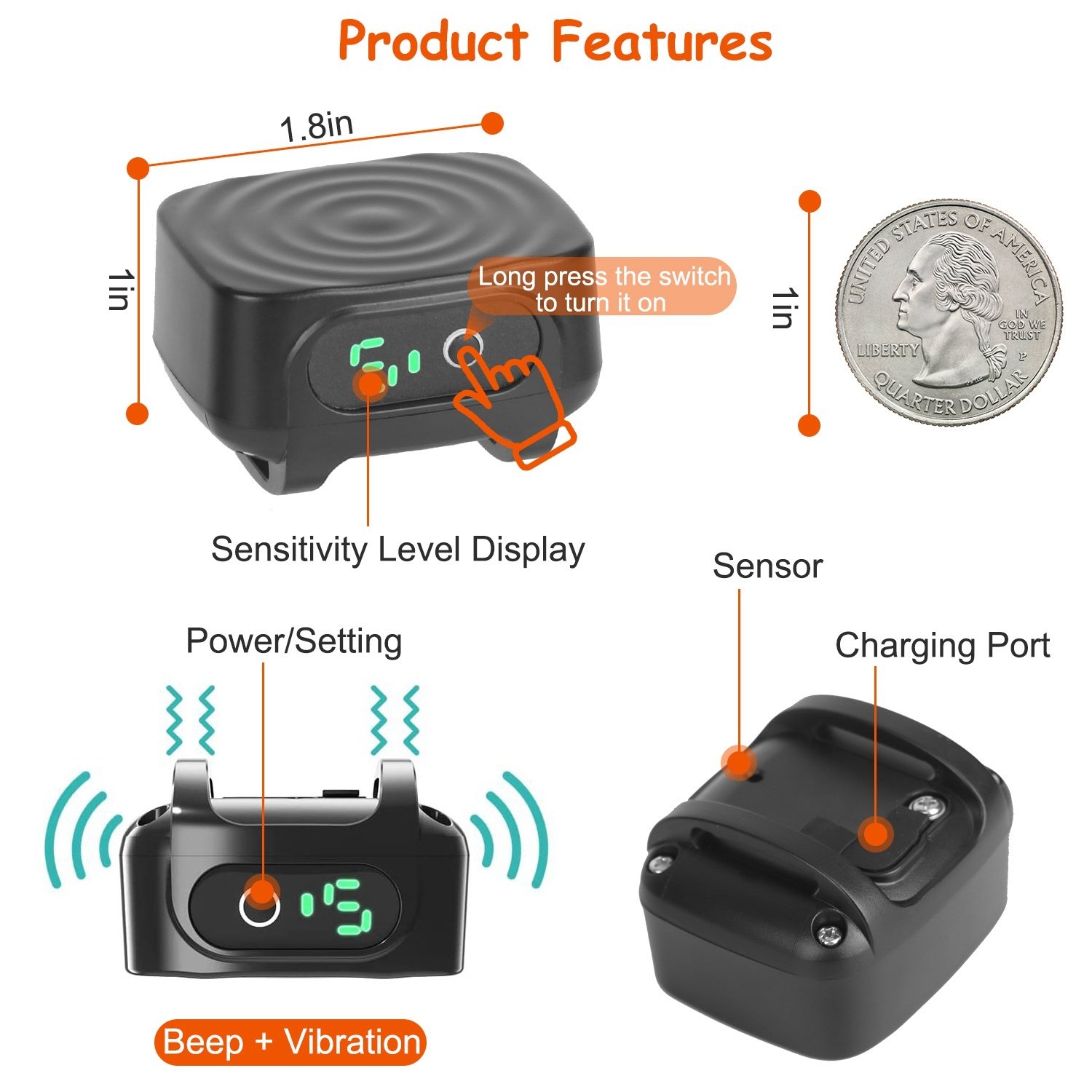Device Size: 4.5*3.8*2.6cm/1.8*1.5*1in