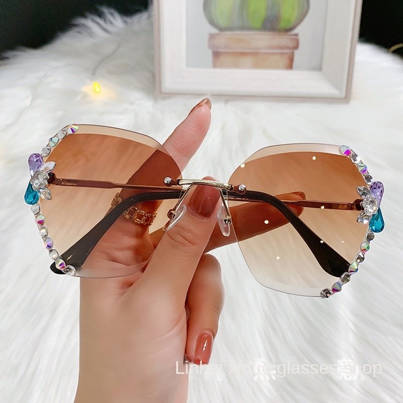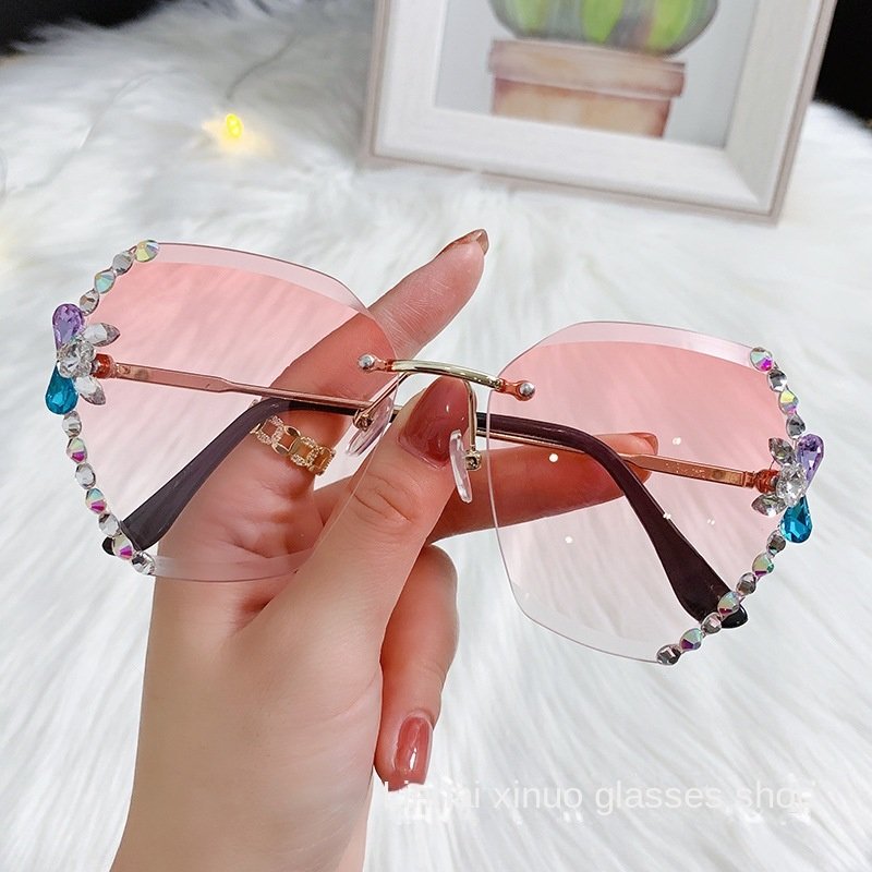 Fashion Diamond rimless Trimmed Sunglasses Women's Fashion Anti UV Slimming Sunglasses