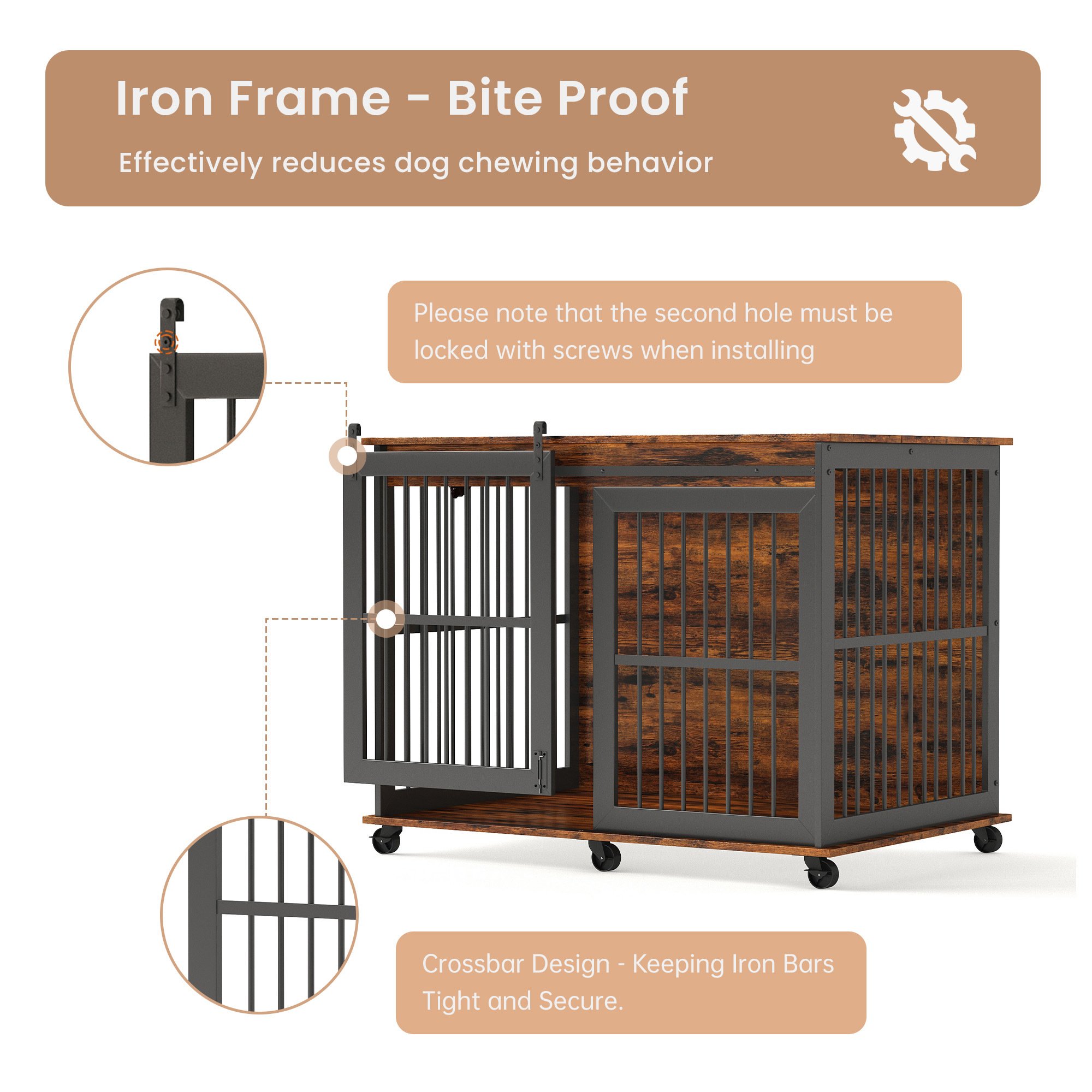 Furniture dog crate sliding iron door dog crate with mat. (Rustic Brown,43.7''W x 30''D x 33.7''H).