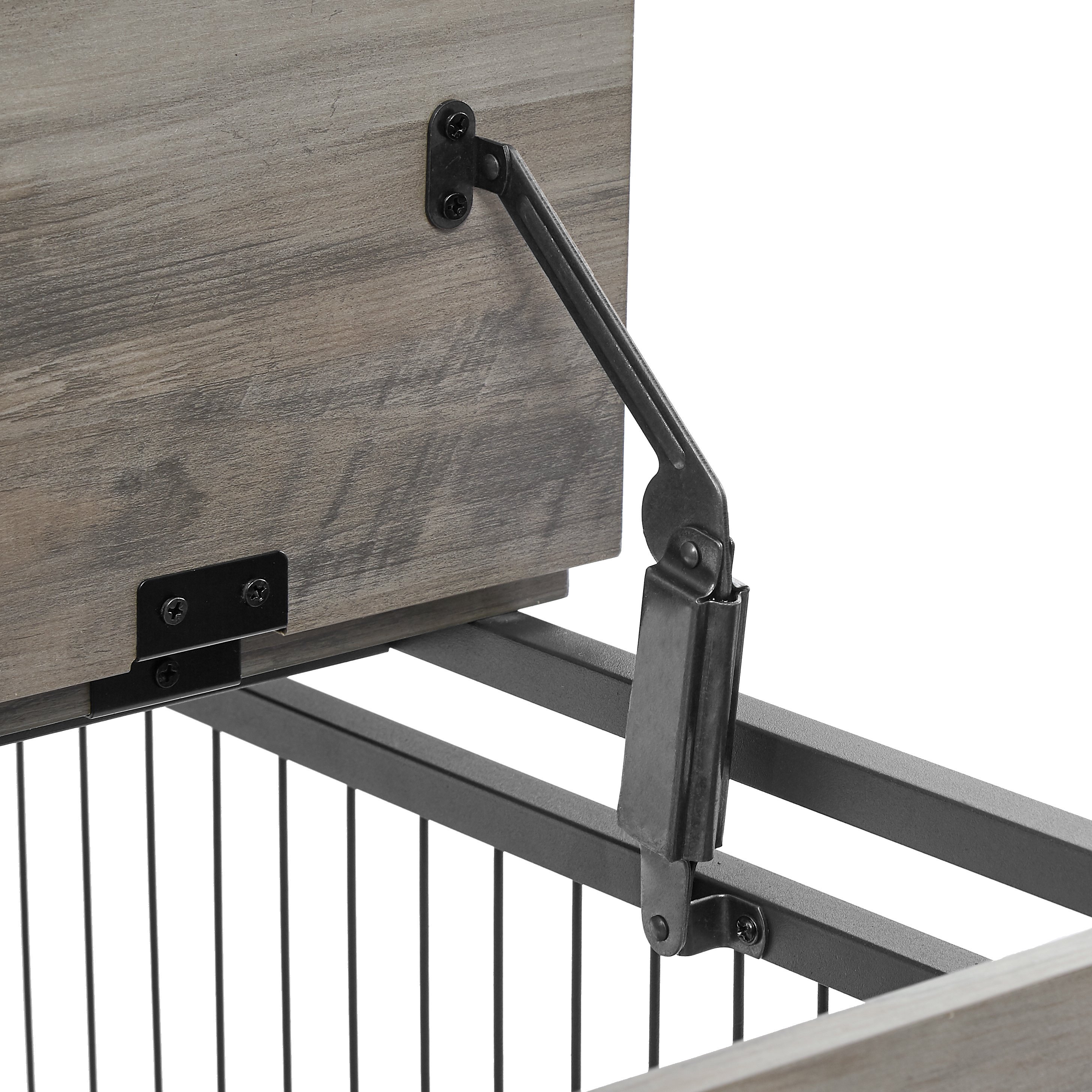 Furniture Style Dog Crate Side Table on Wheels with Double Doors and Lift Top. Grey, 43.7'' W x 30'' D x 31.1'' H.