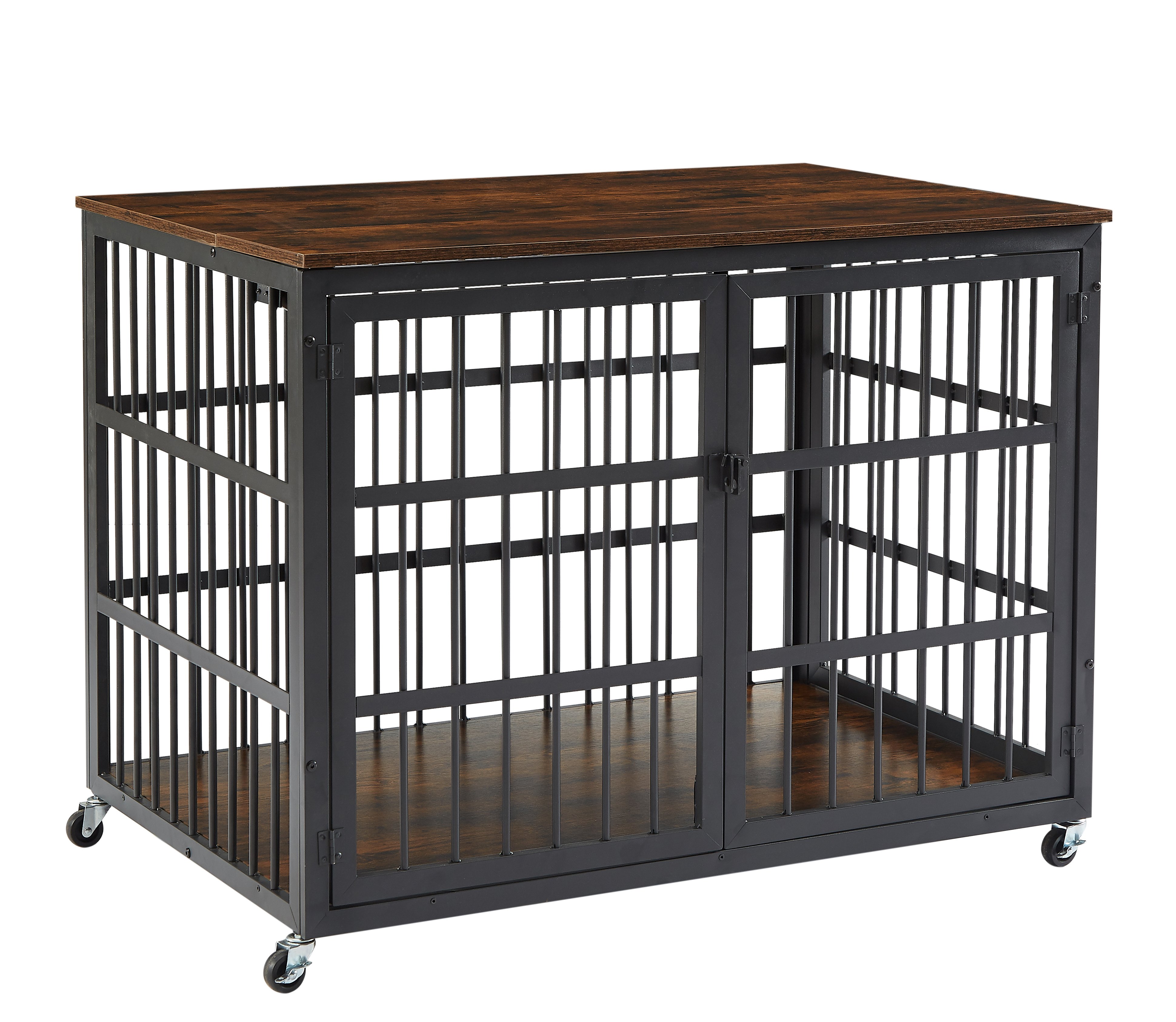 Home > Furniture style dog crate wrought iron frame door with side openings, Grey, 43.3''W x 29.9''D x 33.5''H.