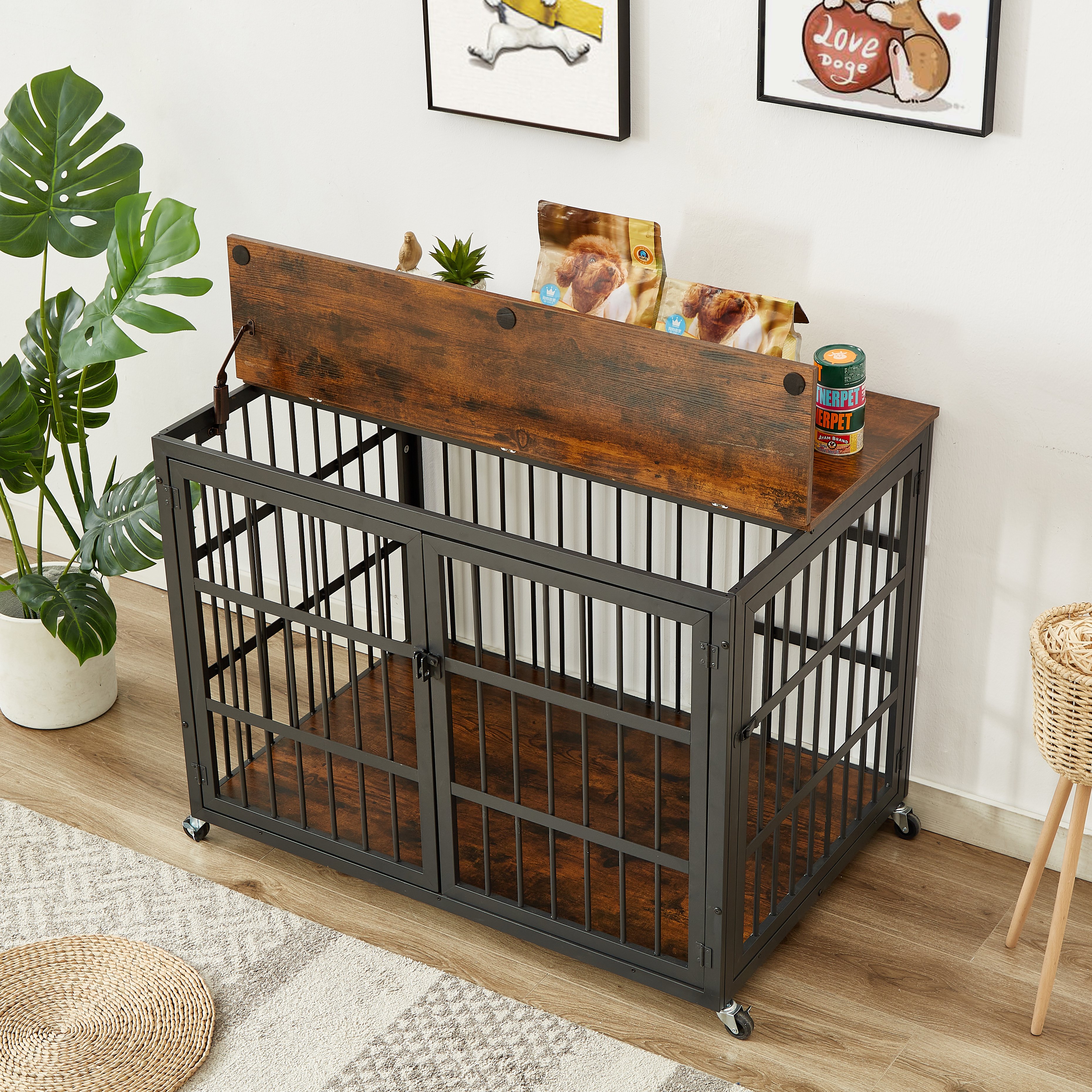 1.This crate has an open view, making it easy for you to keep an eye on your dog, and the top can be opened to interact with your dog.