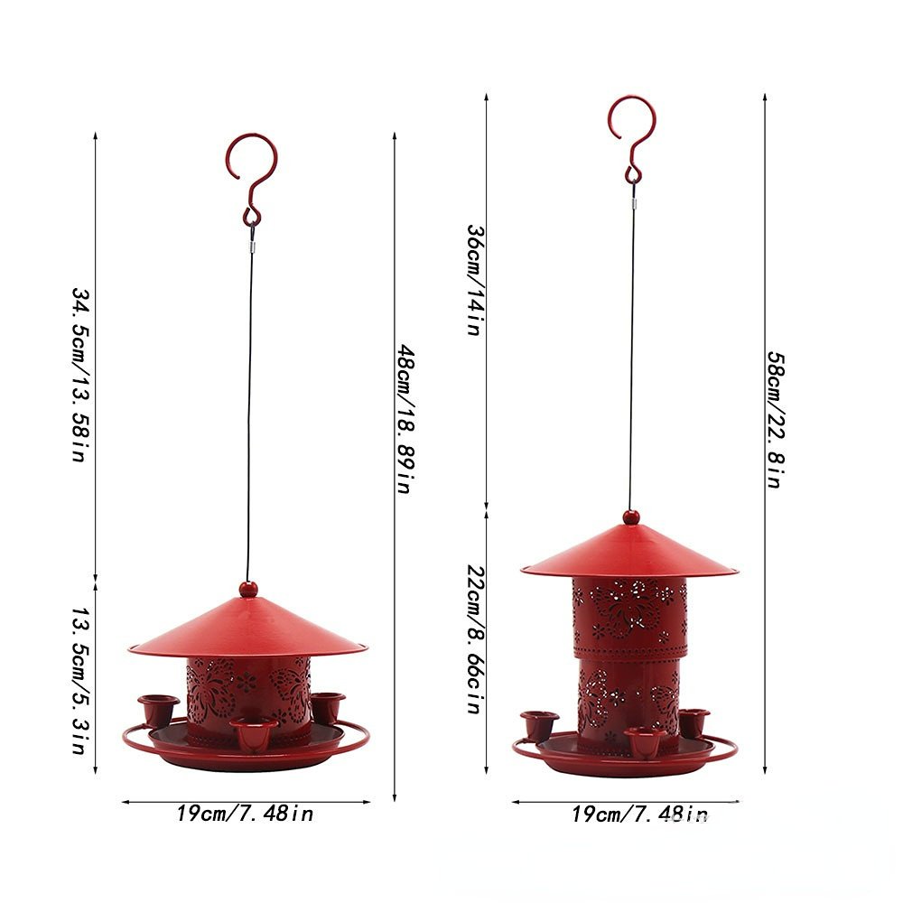 Hanging Hummingbird Feeder; 3 Feeder Ports for Birds; outdoor garden decoration; iron bird feeder; water feeder