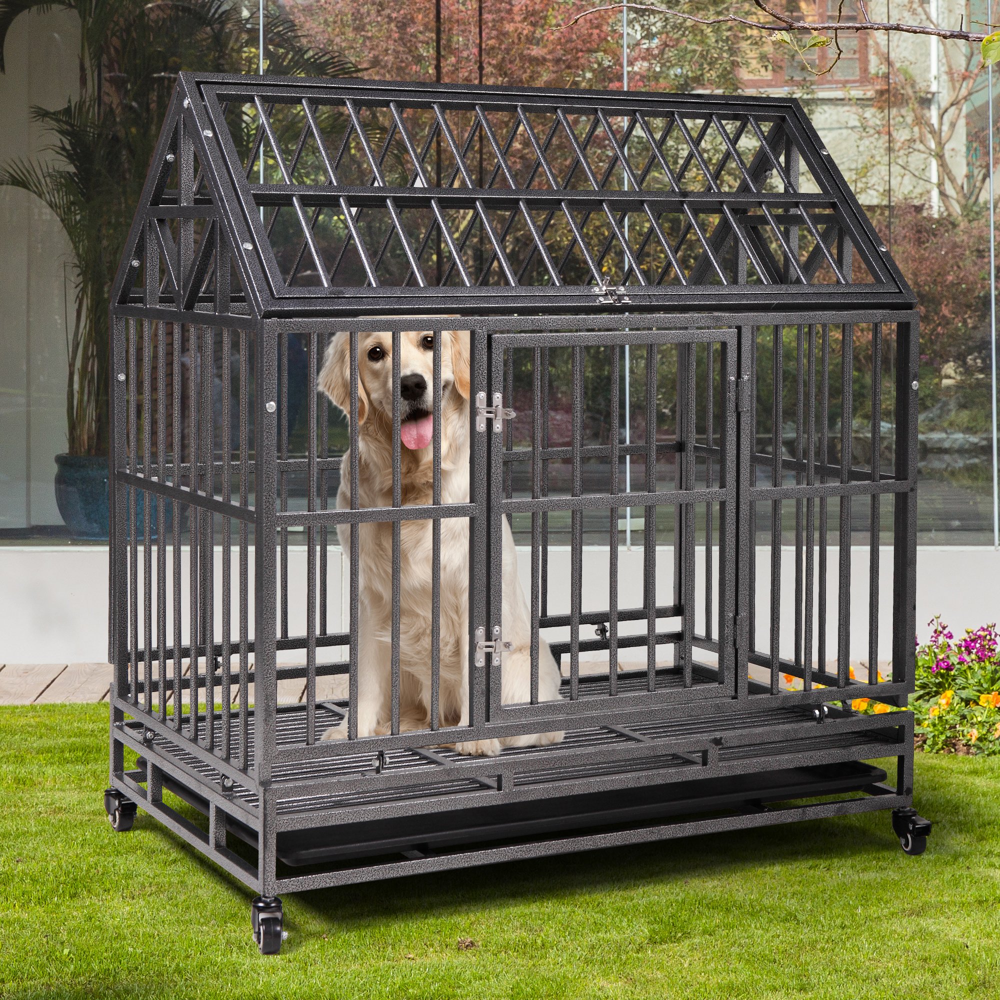 Heavy Duty Metal Dog Kennel Cage Crate with 4 Universal Wheels, Openable Pointed Top and Front Door, Black Heavy Duty Metal Dog Kennel Cage Crate with 4 Universal Wheels, Openable Pointed Top and Front Door, Black Heavy Duty Metal Dog Kennel Cage Crate with 4 Universal Wheels, Openable Pointed Top and Front Door, Black Heavy Duty Metal Dog Kennel Cage Crate with 4 Universal Wheels, Openable Pointed Top and Front Door, Black Heavy Duty Metal Dog Kennel Cage Crate with 4 Universal Wheels, Openable Pointed Top and Front Door, Black Heavy Duty Metal Dog Kennel Cage Crate with 4 Universal Wheels, Openable Pointed Top and Front Door, Black Heavy Duty Metal Dog Kennel Cage Crate with 4 Universal Wheels, Openable Pointed Top and Front Door, Black Heavy Duty Metal Dog Kennel Cage Crate with 4 Universal Wheels, Openable Pointed Top and Front Door, Black Heavy Duty Metal Dog Kennel Cage Crate with 4 Universal Wheels, Openable Pointed Top and Front Door, Black Heavy Duty Metal Dog Kennel Cage Crate with 4 Universal Wheels, Openable Pointed Top and Front Door, Black Heavy Duty Metal Dog Kennel Cage Crate with 4 Universal Wheels, Openable Pointed Top and Front Door, Black Heavy Duty Metal Dog Kennel Cage Crate with 4 Universal Wheels, Openable Pointed Top and Front Door, Black Heavy Duty Metal Dog Kennel Cage Crate with 4 Universal Wheels, Openable Pointed Top and Front Door, Black