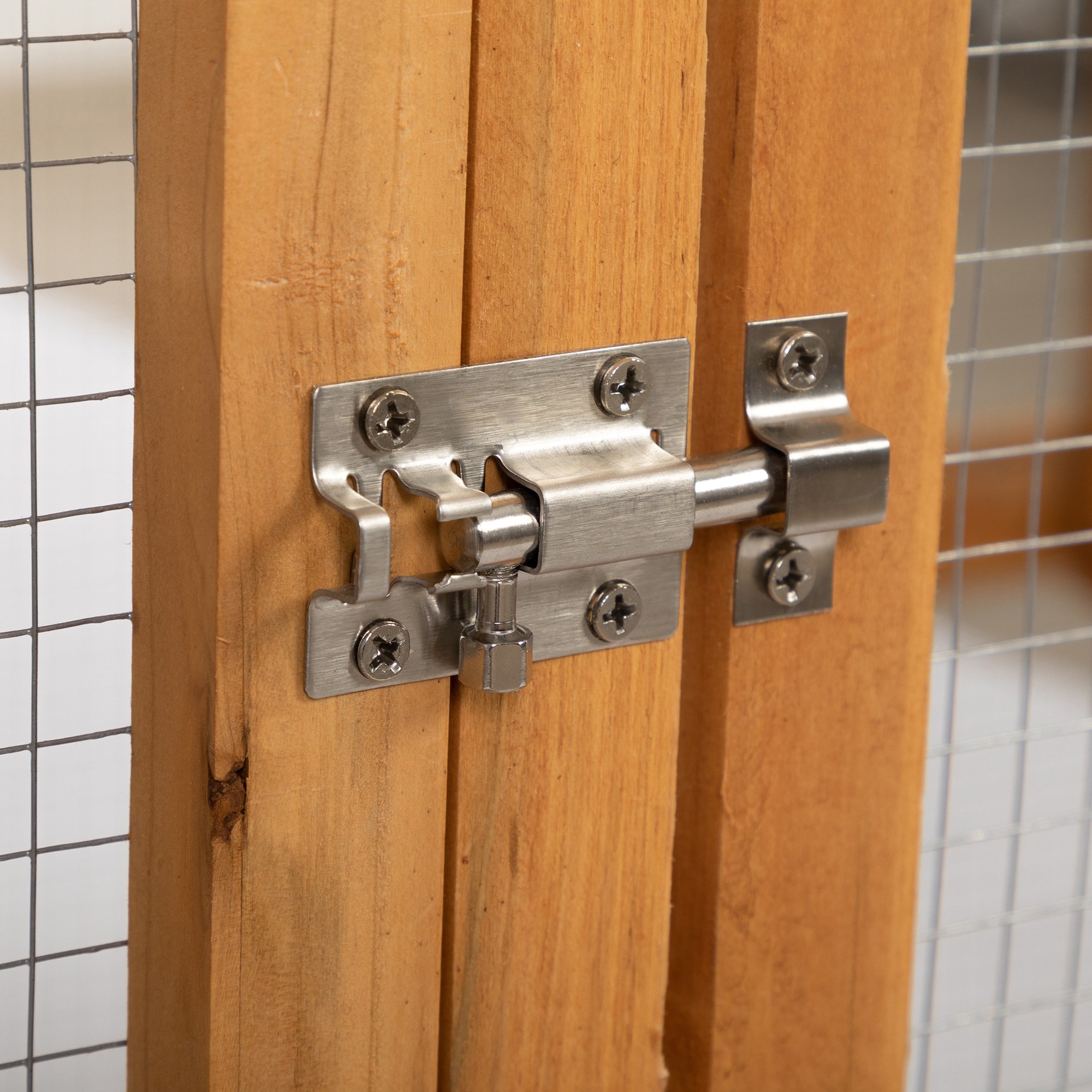 [Durable and Sturdy Material]: Made of quality water-based firwood and strong galvanized wire mesh, the cat cage is sturdy and weatherproof to protect your pets safe from predators.