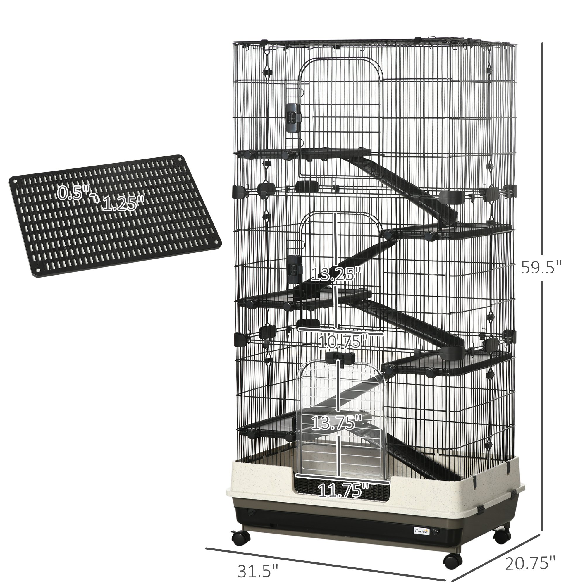PawHut Small Animal Cage with Wheels, Portable Bunny Cage 6-Tier
