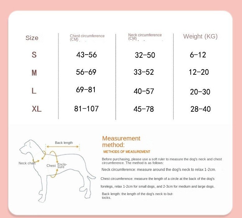 XL:Chest 81-107cm recommended for 28-40kg dogs