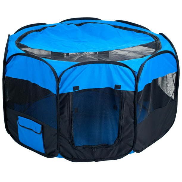 Pop Up Dog Playpen, Blue/Black, 42"L x 42"W x 25"H