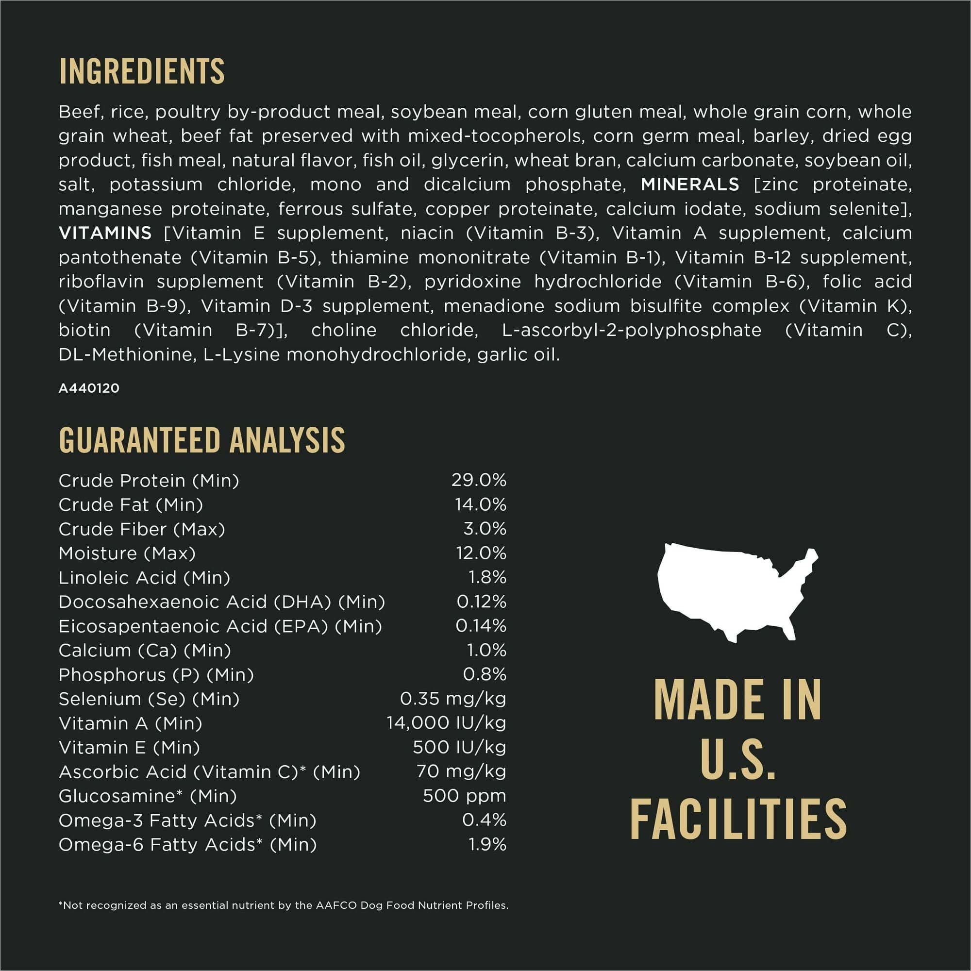 Unleash your senior dog’s full potential by serving them Purina Pro Plan Senior Adult 7+ Shredded Blend Beef & Rice Formula dry food for dogs. Made with real high-quality beef as the #1 ingredient, this high protein senior dry dog food contains 29% high quality protein to help support lean muscle, including the heart, making it an excellent choice when it comes to choosing a senior dry dog food. Plus, this Purina Pro Plan dog food includes Vitamin A and omega-6 fatty acids to help nourish the health of your dog’s skin and coat. The natural prebiotic fiber featured in this real beef dry dog food promotes the health of the intestinal bacteria within your dog’s gut to aid healthy digestion. This Purina Pro Plan senior dog food kibble is packed with the targeted nutrition senior dogs need in each bite. Plus, every piece of this shredded, tender dog food offers a savory taste and a texture that dogs look forward to at mealtime. Be confident knowing this Purina Pro Plan shredded dog food with antioxidants for dogs meets the unique nutritional needs of your senior dog and is proudly manufactured in Purina-owned facilities. Try this Purina Pro Plan Senior Adult 7+ Complete Essentials Shredded Blend Beef & Rice Formula High Protein Dog Food risk-free.