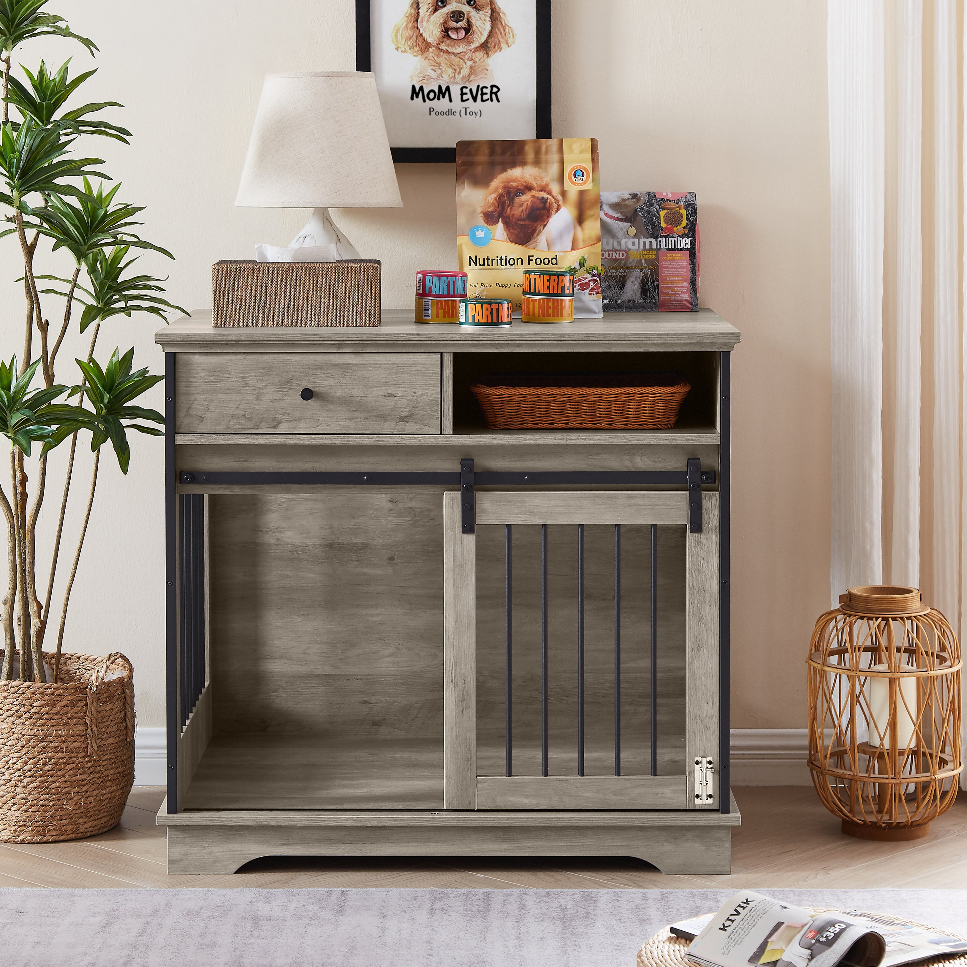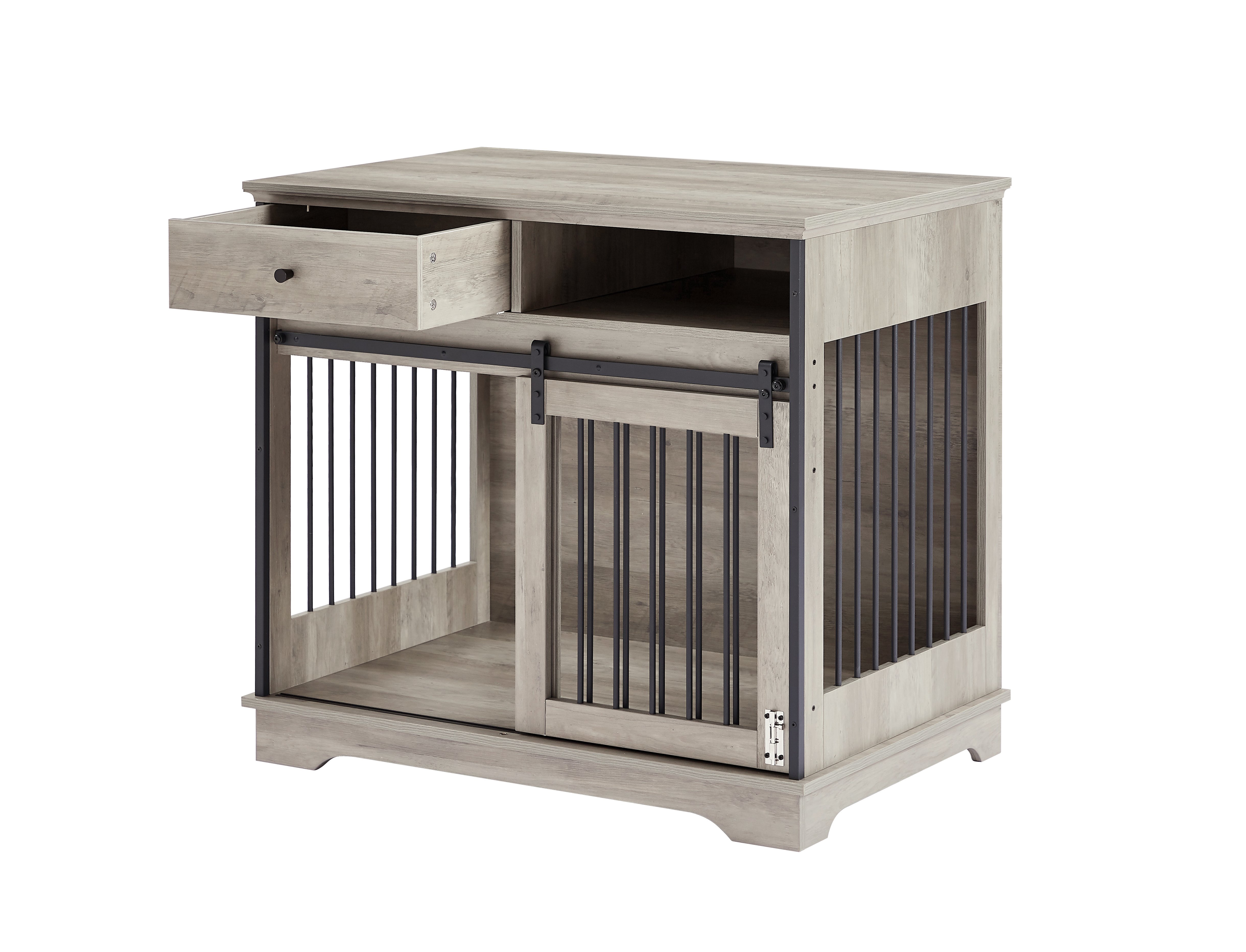 Sliding door dog crate with drawers. 35.43'' W x 23.62'' D x 33.46'' H