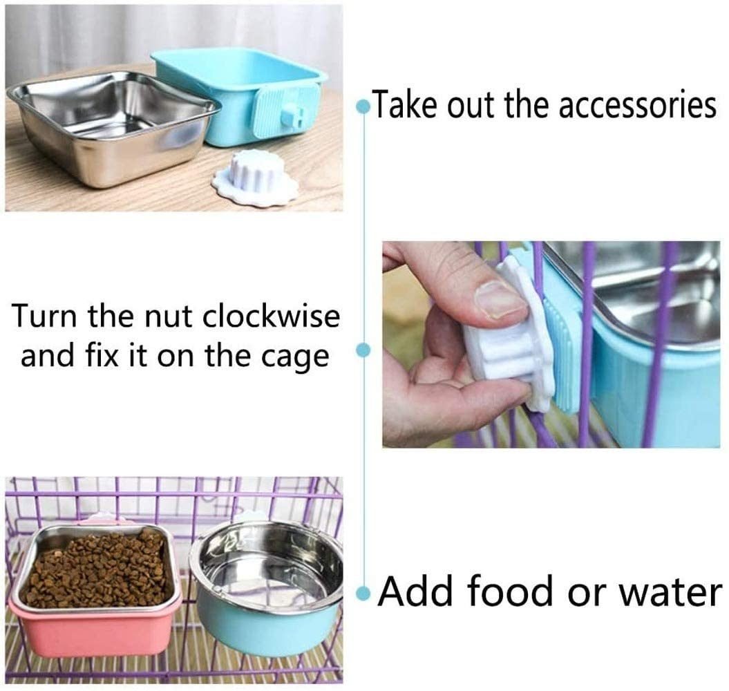 Stainless Steel Pet Crate Bowl Removable Cage Hanging Bowls with Bolt Holder for Pets